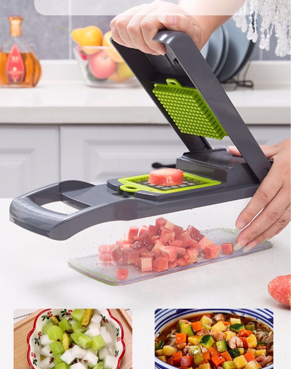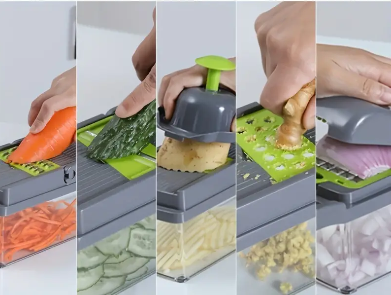 مع هذا التنوع، يمكنك تحضير البطاطس، الطماطم، الخيار، الجزر، الثوم، الشوكولاتة، الجبن، وغير ذلك بسرعة وكفاءة.